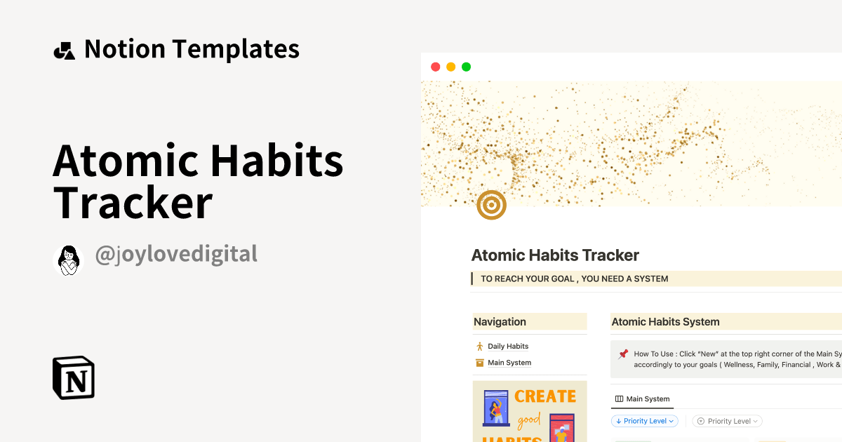 Transform your habits and achieve lasting change with the atomic habits notion template, part of. Inspired by james clear's atomic habits, this notion template is designed to help you turn your goals into daily habits and track your progress with ease. Boost your development with the atomic habits notion template pack. Based on the principles of james clear's book atomic.